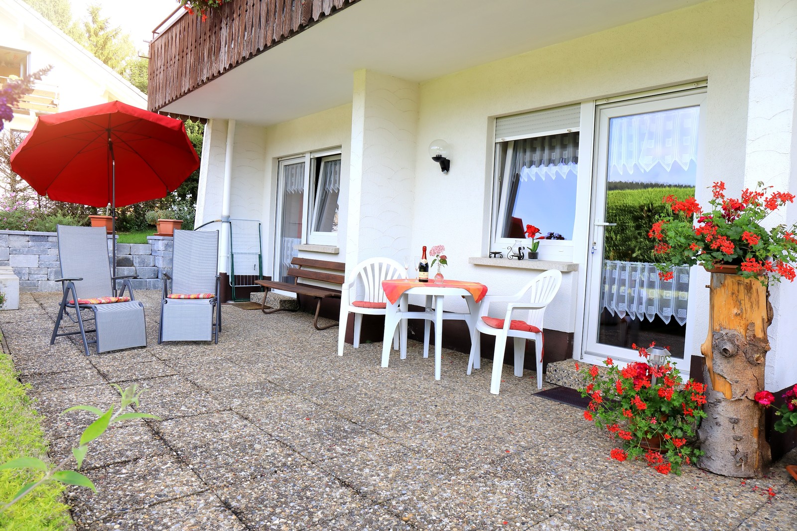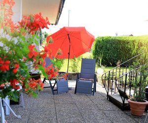 Unsere kleine Ferienwohnung verfügt über ein Schlafzimmer, Bad mit Dusche, Wohn-Esszimmer und einer extra Kochnische. Sie befindet sich im EG mit separatem Eingang. Die Terrasse lädt Sie zum gemütlichen Verweilen ein.